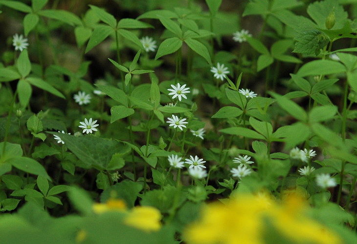 ミヤマハコベはハコベよりもはるかに大きく、立派な春の低山の花です。ただ若緑の中だけだとちょっと寂しく、何か他の色と一緒に咲いているとよいですね。