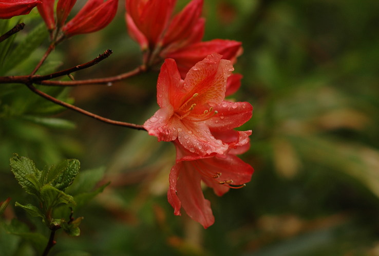 ここから少し、志賀高原の花の写真が続きます。 この日はあいにくの雨であまり写真を撮る時間はありませんでした。やっと小さな湿原を歩く事が出来、そこで撮ったものばかりです。 レンゲツツジは咲きはじめたばかりでした。まだ蕾のものの方がはるかに多かったです。 雨の雫の滴るレンゲツツジもなかなか素敵でした。