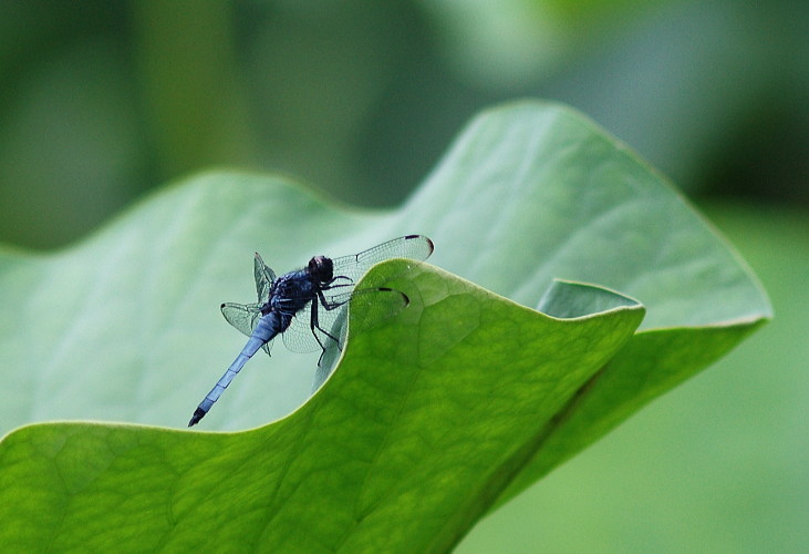 古代ハスの大きな葉にとまるオオシオカラトンボ。 昆虫はよくわかりません。ですからこのトンボがオオシオカラトンボだというのもちょっと自信がありません。