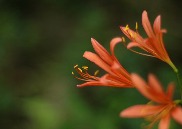 花の少ない夏の森の脇にひっそりと咲くキツネノカミソリが好きです。あまり群生しすぎていない方がいい。