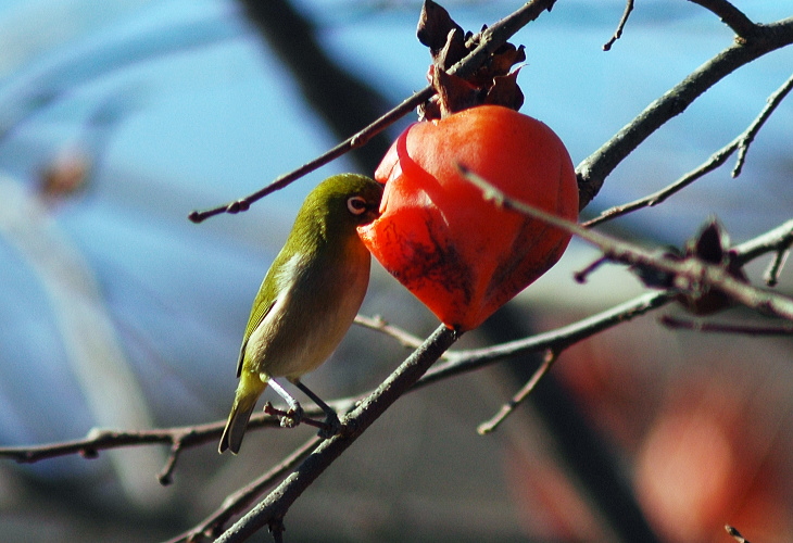 年が明けても柿の実がなっているものが残っています。そんな柿の実を突っつきにいろんな小鳥がきます。そんな小鳥達の写真です。 エナガ メジロ ヒヨドリ ムクドリ スズメ