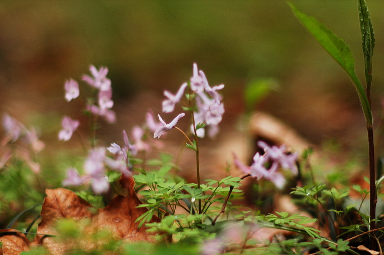 紫がかったピンク色の綺麗なヤマエンゴサク。不思議な形でもあります。ただ花が散漫に着くので写真にするのはちょっと難しいです。
