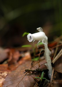 6月上旬。里山でギンリョウソウを見つけました。ちょっと高い所に行くと夏の花ですが、この辺りでは初夏の花です。と言っても、数は多くありません。