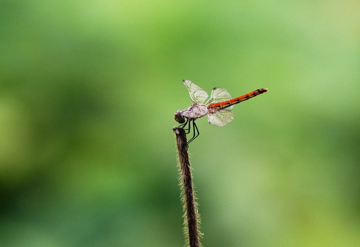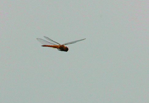 とまっている所と、飛んでいる所。いずれも何赤トンボだか判りません。 飛んでいる時は足をたたんでいるのですね。